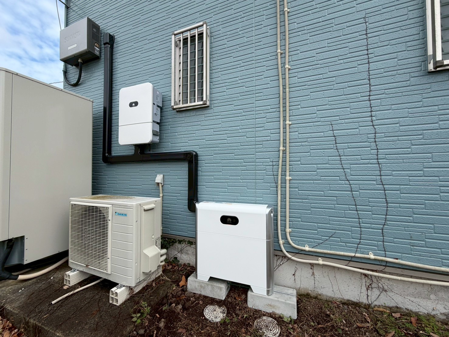 HUAWEIの5kWh蓄電池を導入し、コンパクトに電力を活用できる環境となりました。大きすぎない、ちょうどいい容量感でありながら、日常の一部を支える無理のない電力利用。シンプルに備えられる安心の設備でございます。